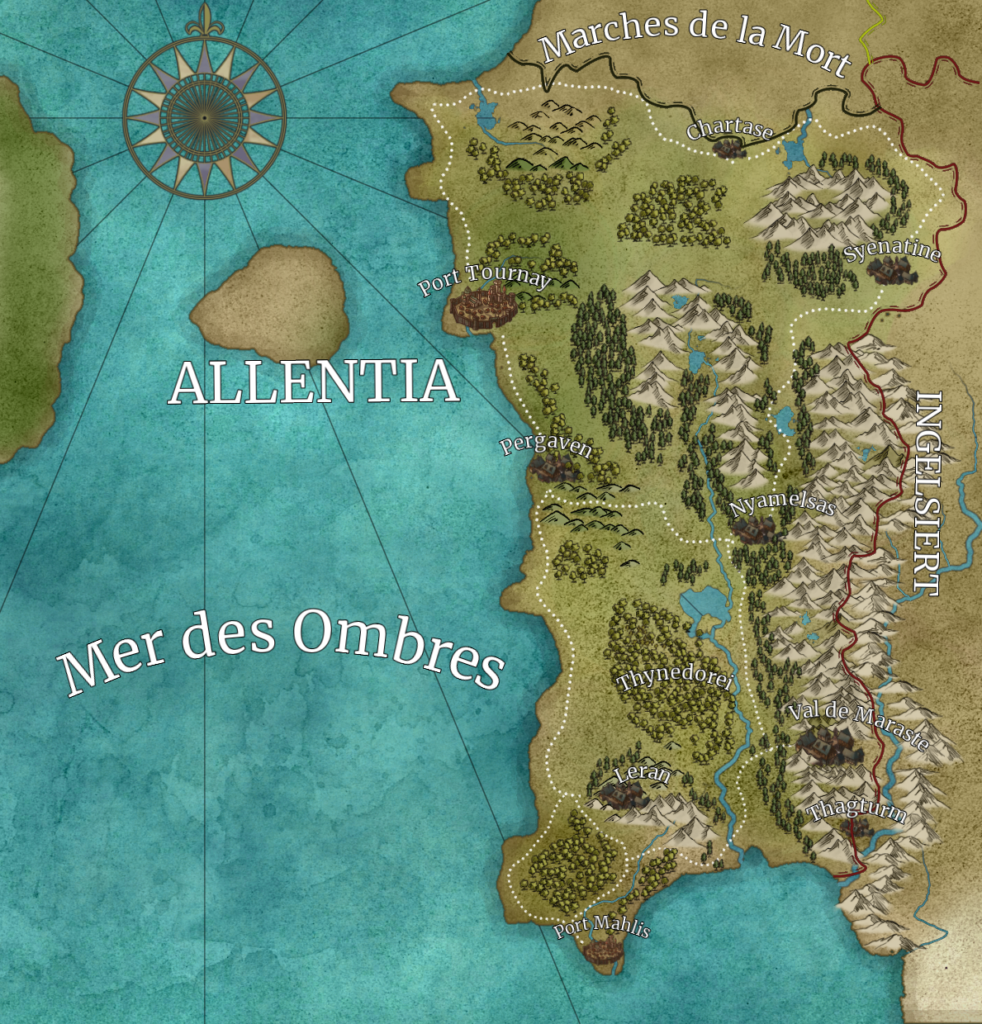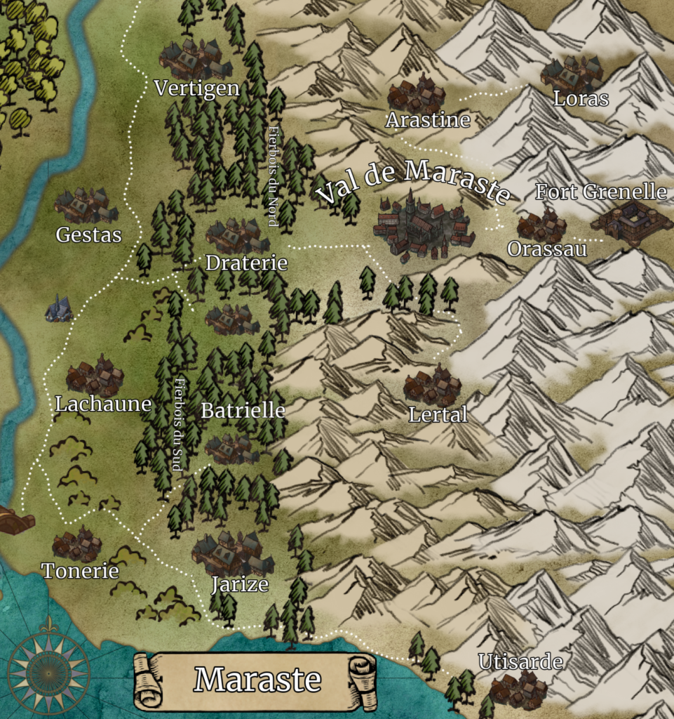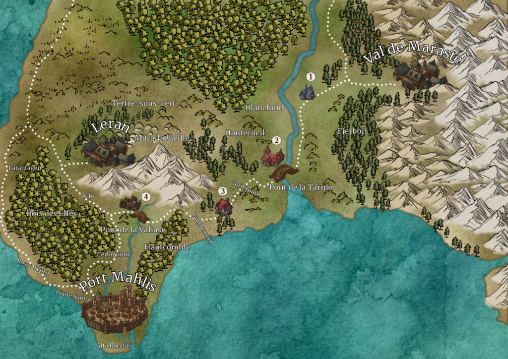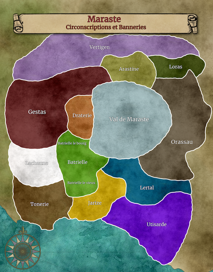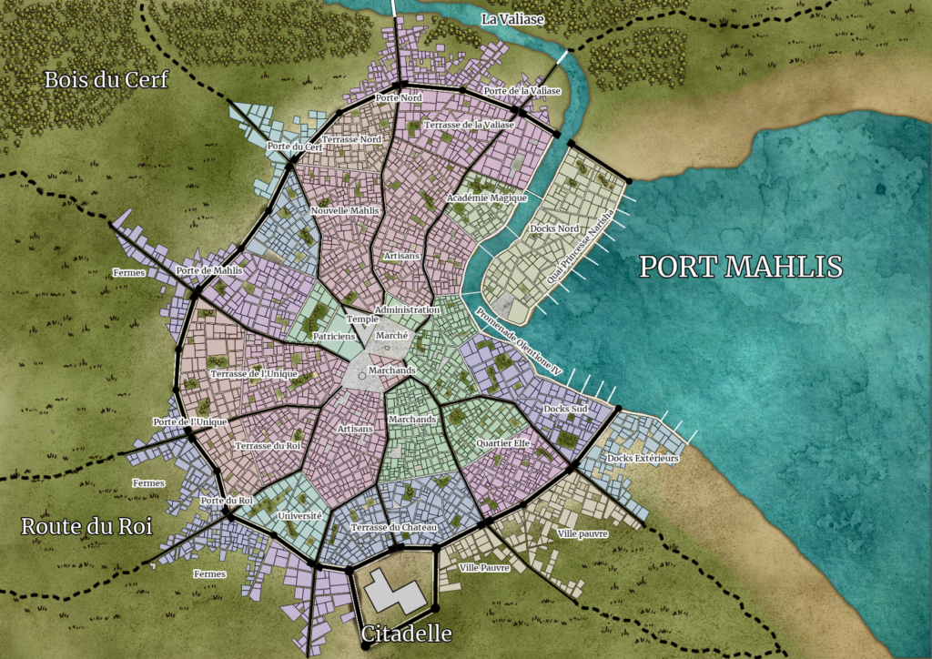 Cartes Aide de Jeu, Cartes, Géographie, Localisations, Mahlis, Maraste, Port Mahlis, Villes Port Mahlis: Quartier des docksSud AllentiaPort MahlisAllentiaPaiantisDolondePhaemonMarasteMaraste: Circonscriptions et BanneriesIle de Cordays (Détail)Archipel des LovariannesKaharaka